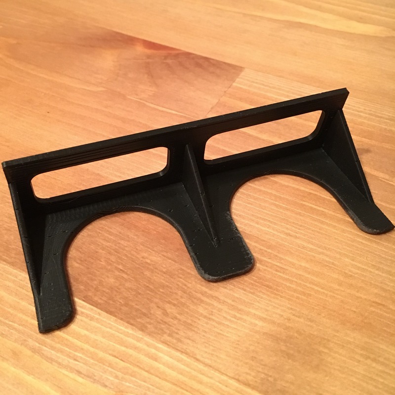 I found a model of a cell phone charging station and modified it to my liking. I changed the way the sound is piped through the channel, and simplified some of the geometry. This was printed in ABS at 0.2mm layer height.