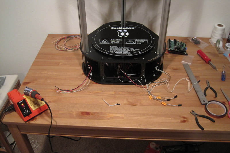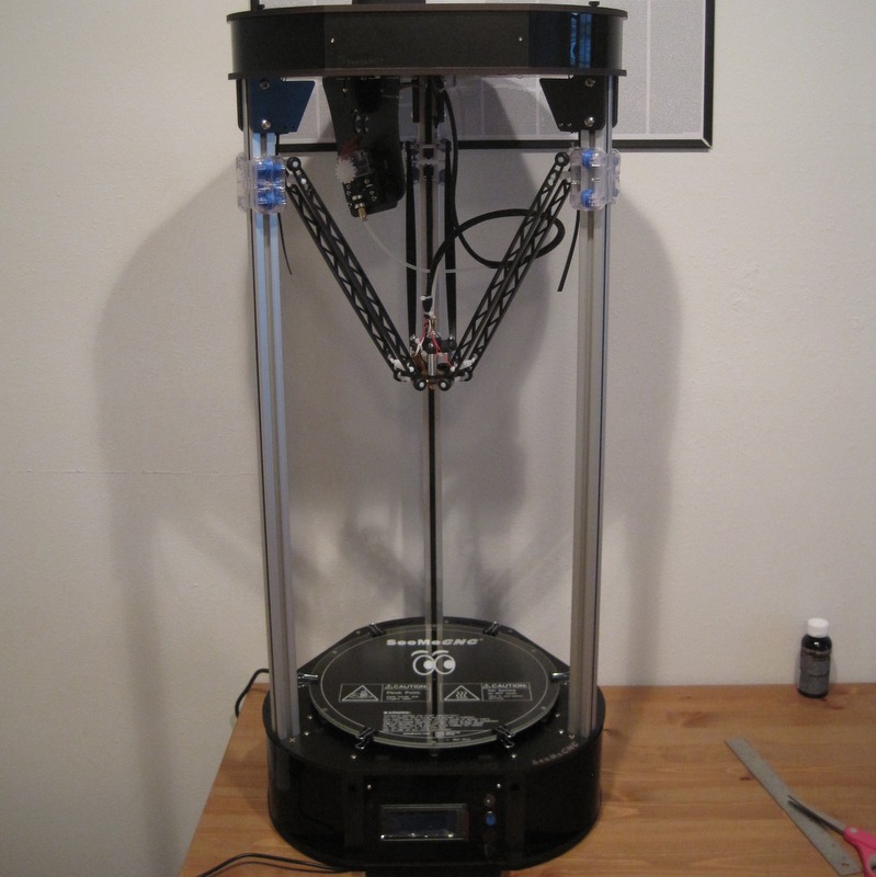 I assembled and calibrated the Rostock Max v2 3D printer kit from SeeMeCNC. It has a 10.5" diameter by 14" built height, with a heated borosilicate glass bed. The Rostock Max v2 is a delta machine with hot-end and layer cooling fans. I've printed with ABS and PLA so far, with satisfying results.