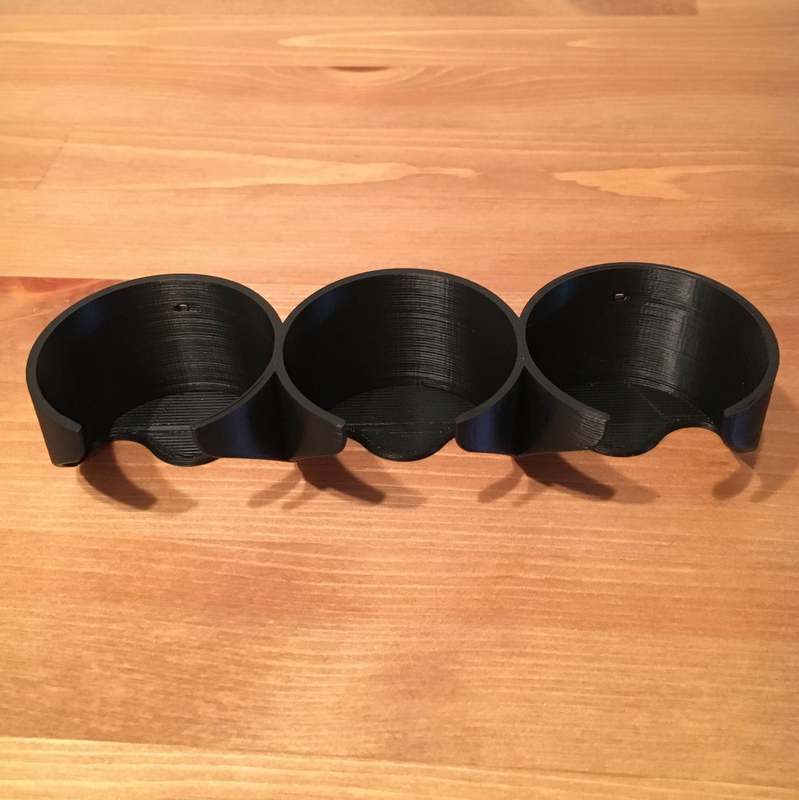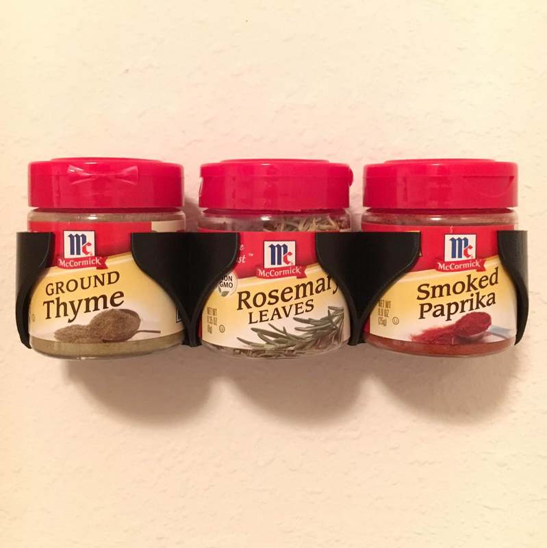 I designed this spice rack to hold 3 small McCormick spice bottles. The rack is printed with 2 holes in back and gets mounted to the wall. This was printed in ABS at 0.2mm layer height.